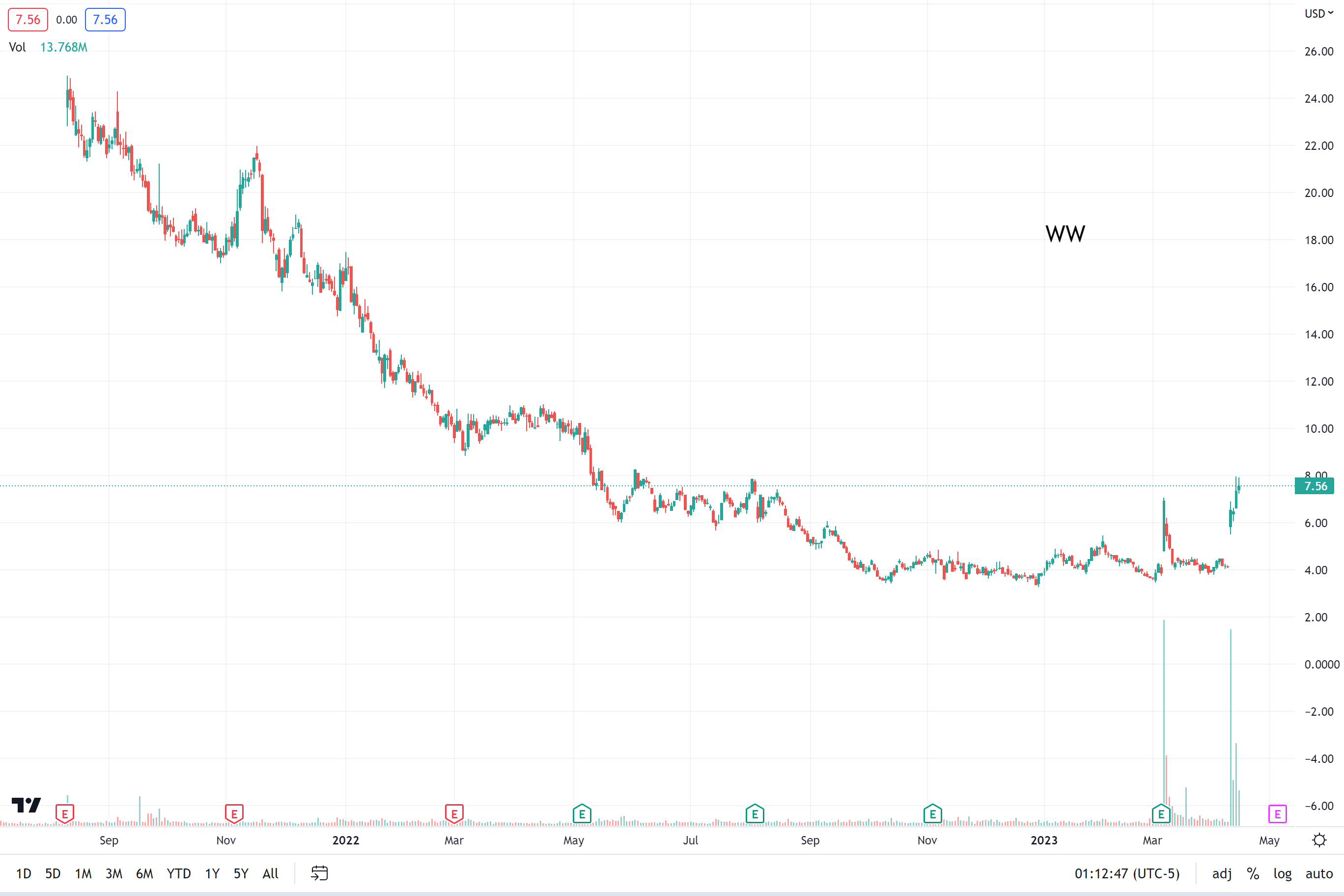 One of tracking mechanisms flagged Weight Watchers, or now WW International (WW), as out of norm trading. We noticed unusually high volume: